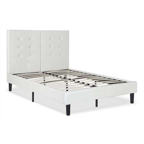 - Queen size Off-White Light Grey Faux Leather Upholstered Platform Bed with Headboard