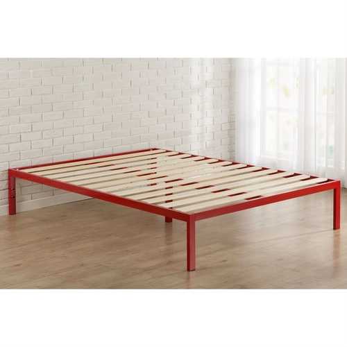 Full size Red Metal Platform Bed Frame with Wood Slats
