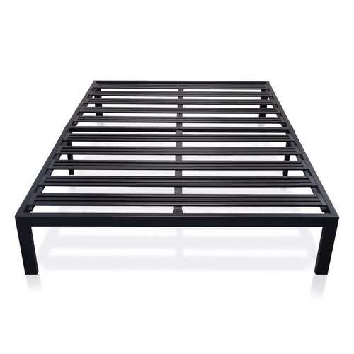 Full size Metal Platform Bed Frame with 3.86 inch Wide Heavy Duty Steel Slats Modern, simple design - perfect for minimalists Super sturdy and durable steel slats - 100% steel construction More points of contact for superior stability and support Quick and easy assembly. No additional tools required 5-year manufacturer warranty