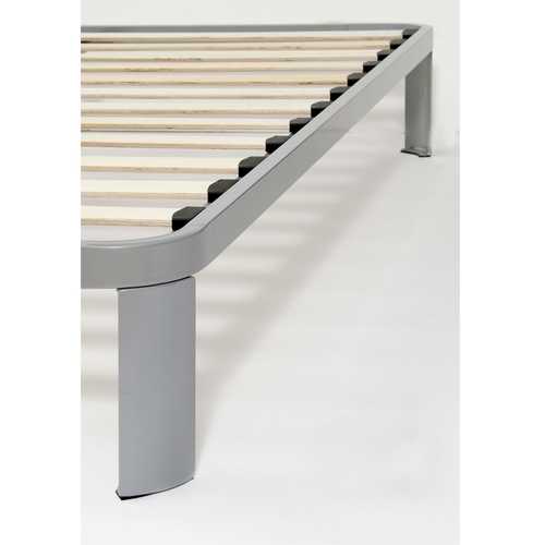 Twin size Luna Metal Platform Bed Frame with Wood Slats Durable wooden slat support system Steel construction Brushed silver finish Frame Material Details: Steel with wooden slats Assembly Required: Yes Tools Needed for Assembly: All tools included Product Warranty: 1 Year limited distributor warranty Bed Type: Platform Slats Included: Yes Powder Coated Finish: Yes Additional Parts Required: No Gloss Finish: Yes Style: Contemporary Finish: Silver Distressed: No Frame Material: Metal & Wood Solid Wood Construction: No Upholstered: No Non Toxic: Yes Mattress Included: No Recommended Mattress Height: 8 Inches Bookcase: No Headboard Included: No Footboard Included: No Box Spring Required: No Underbed Storage: No Slats Required: Yes Trundle Bed Included: No Finished Back: Yes Bed Rails Included: No Wood Moldings: No Hidden Storage: No Commercial Use: Yes Product Care: Wipe clean with a cloth Eco-Friendly: No Country of Manufacture: China